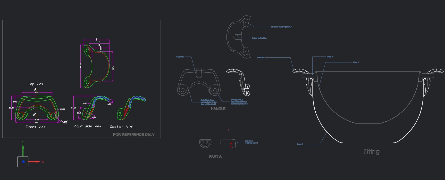Swing Colander Bowl & Handle – 2D Drawing to 3D Printable Model